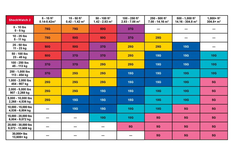 ShockWatch 2 offers multiple activation levels to meet the needs of various industries and product types. Selecting the correct g-force threshold is crucial to balancing protection without triggering false alarms.